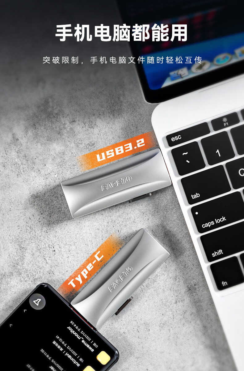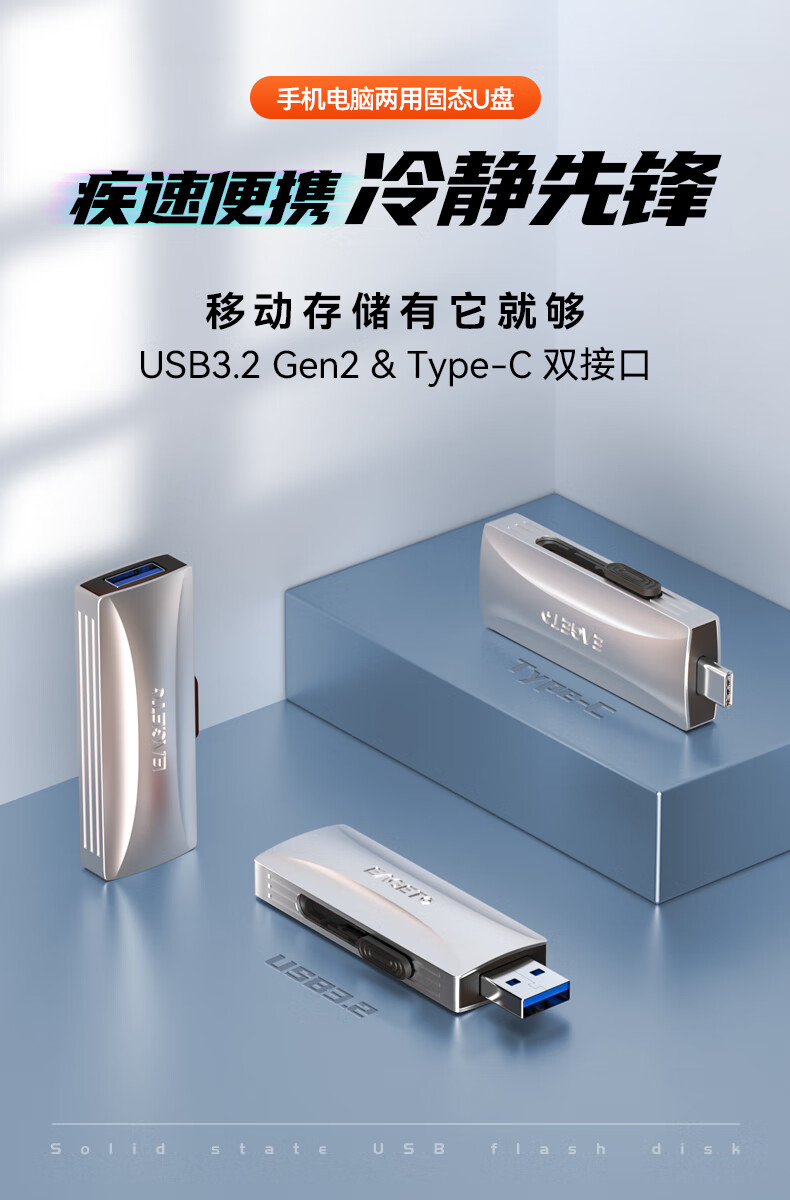 • 商品名称:忆捷(EAGET)SU33 固态U盘 1TB USB3.2 Gen2 Type-C双接口 手机电脑两用