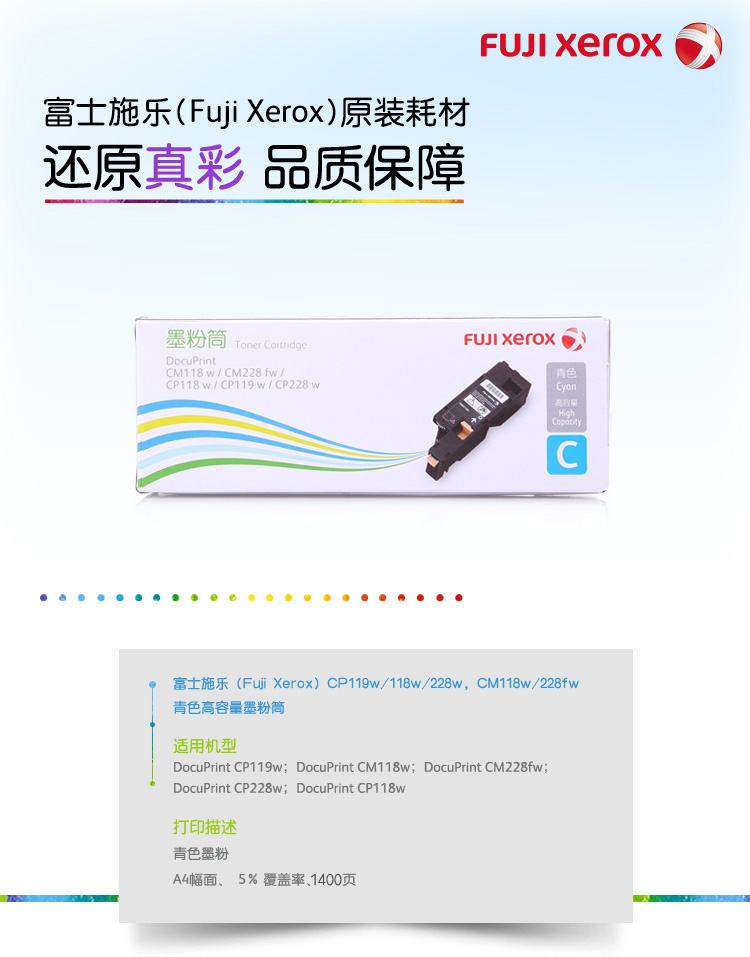 • 商品名称:富士施乐青色粉盒 CT203038 适用于 CP119w 118w 228w CM118w 228fw 经济型